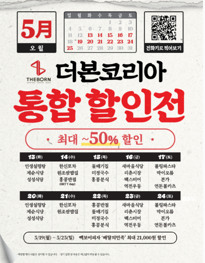 이번 더본코리아의 통합 할인 이벤트는 홍콩반점0410을 비롯한 다양한 브랜드에서 최대 50%의 할인 혜택을 제공합니다. 특정 날짜에 해당 브랜드를 방문하여 제로페이, 간편결제 앱 또는 제휴카드로 결제하면 자동으로 할인이 적용되니, 외식 계획을 세우는 데 참고하시기 바랍니다.