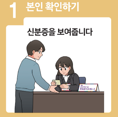 주민등록증, 운전면허증, 여권 등 신분증을 지참하고 방문 - 신분 확인