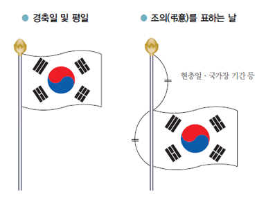 - 조기 게양 시 태극기가 바닥에 닿지 않도록 주의합니다.