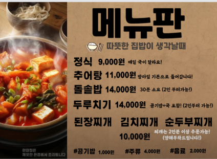 - 특징: 가정식 백반과 함께 다양한 한식을 맛볼 수 있으며, 매주 월요일은 휴무이니 방문 시 참고하세요.