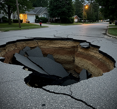 - 노후화된 상·하수도관 누수: 오랜 관로가 터지며 흙이 씻겨 나가 지반이 약화됩니다.