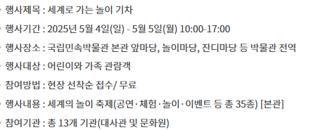 4. 🏛️ 국립민속박물관 – 어린이날 한마당 ‘세계로 가는 놀이 기차’
