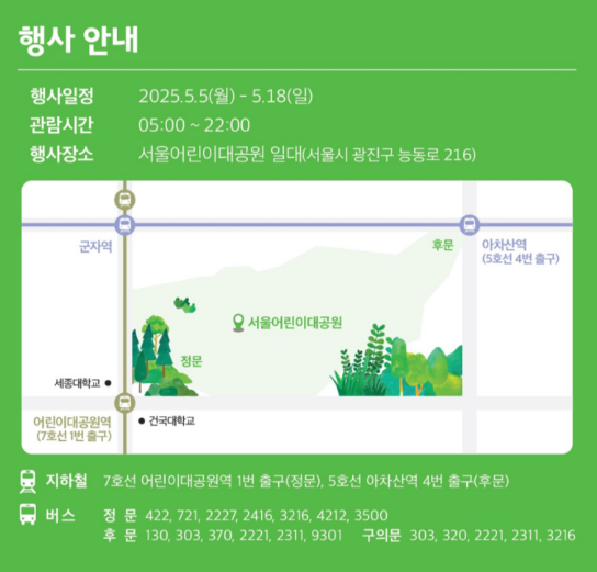 - 장소: 서울어린이대공원 생태연못 일대 (광진구 능동로 216)