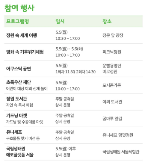 - 일시: 5월 5일(월) 10:00 ~ 16:00